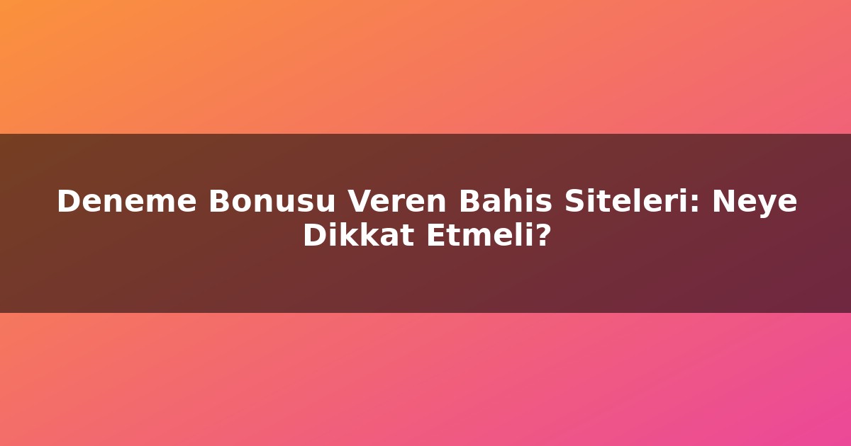 Deneme Bonusu Veren Bahis Siteleri: Neye Dikkat Etmeli?